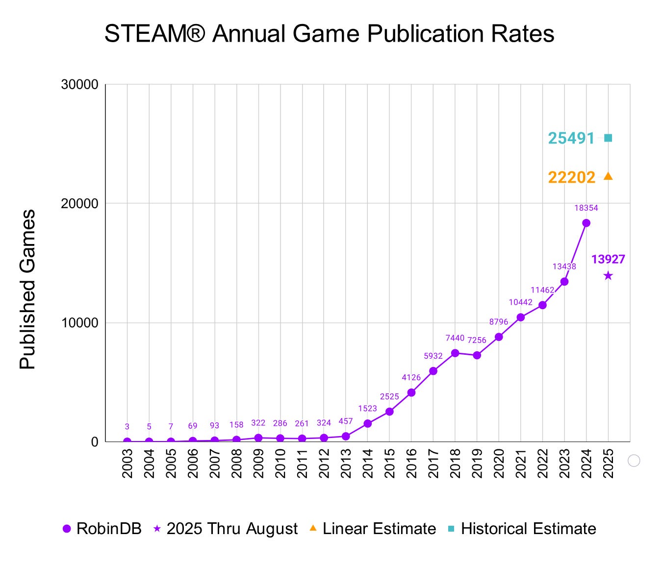 Let’s emphasize that number: STEAM® has published more games in the first 8 months of 2025 than in all of 2023.